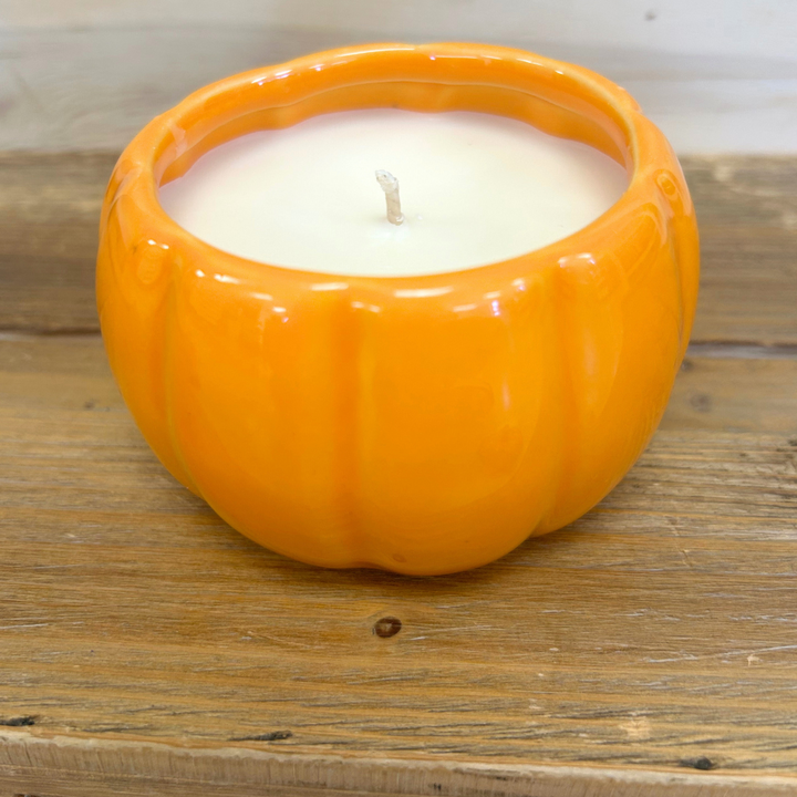 Our fall favorite Pumpkin Spice Candle in a reusable ceramic jar.